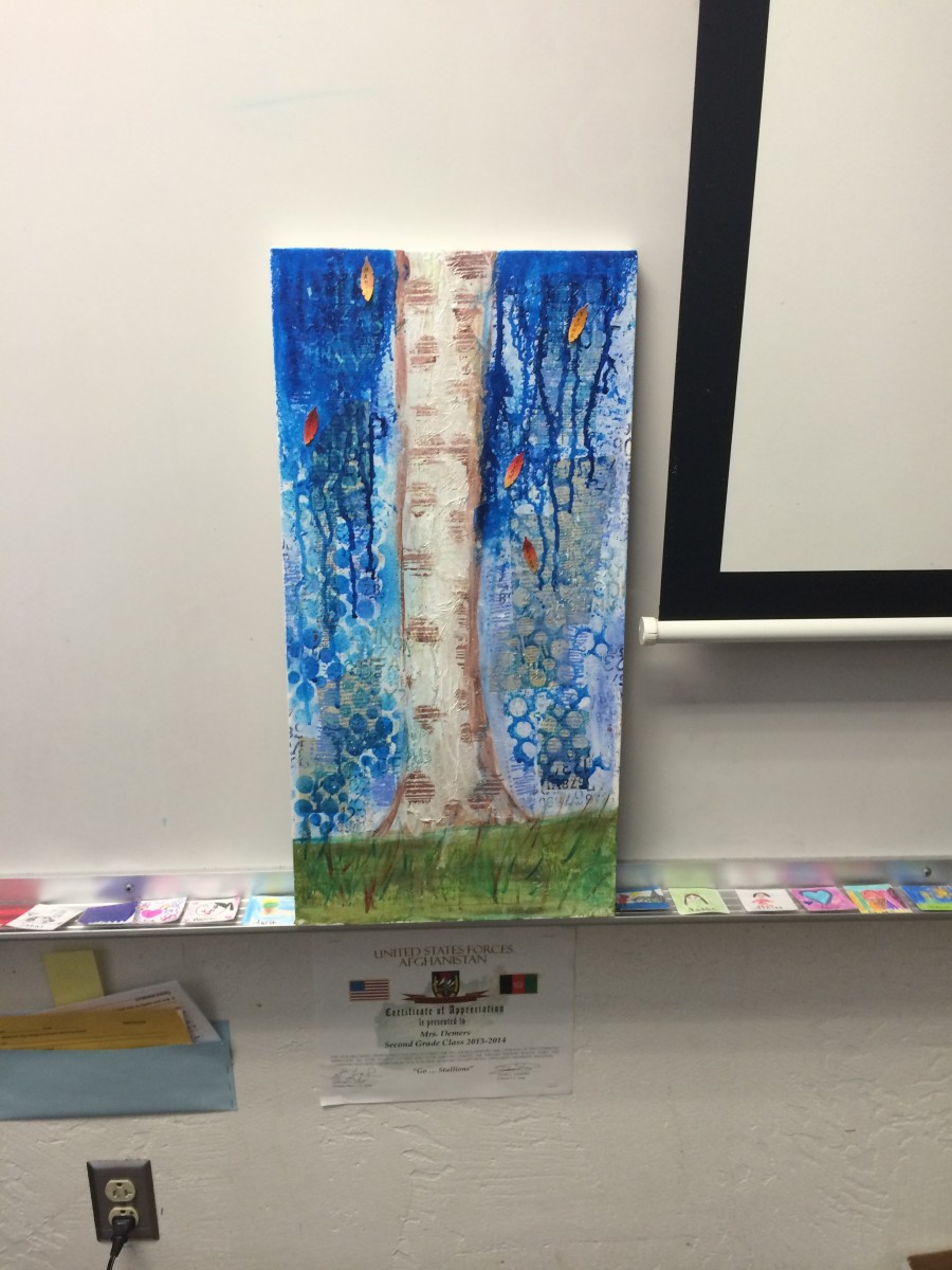 Yes, I can and do go in and teach these amazing kids cool art techniques, but my middle child’s teacher wanted to try something different. She asked if I could come in and show them what I do with mix media. Obviously I said yes.