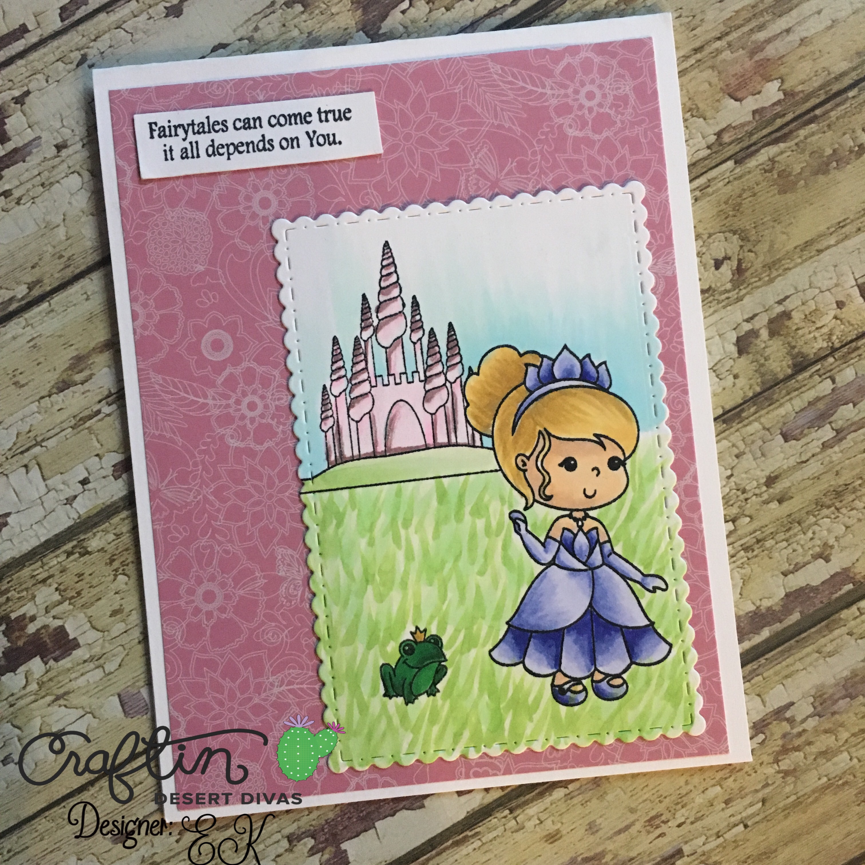 I die cut the image with CDD’s die set Fancy Frame Dies and backed the image with some pretty pink printed paper.