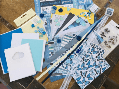It is that time of Month again when we get to unveil our latest and greatest Subscription Kit. This month’s kit, the March “Blue Skies” Subscription Kit, features a collection of lovely blues, yellow and gold craft supplies giving you a breath and hope of blue skies as we wait out the last of winter.