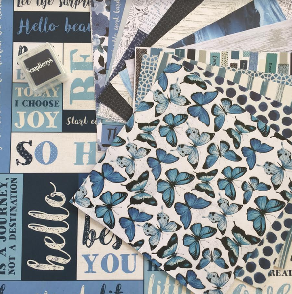 Pack of 18 6.5″x6.5″ “Indigo Skies” papers from Kaisercraft (Australia),