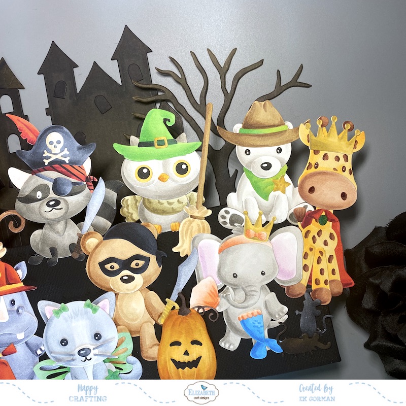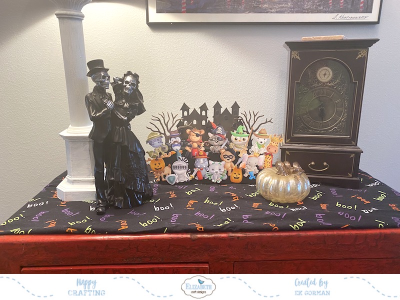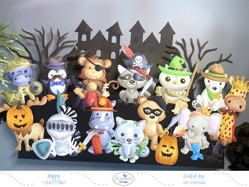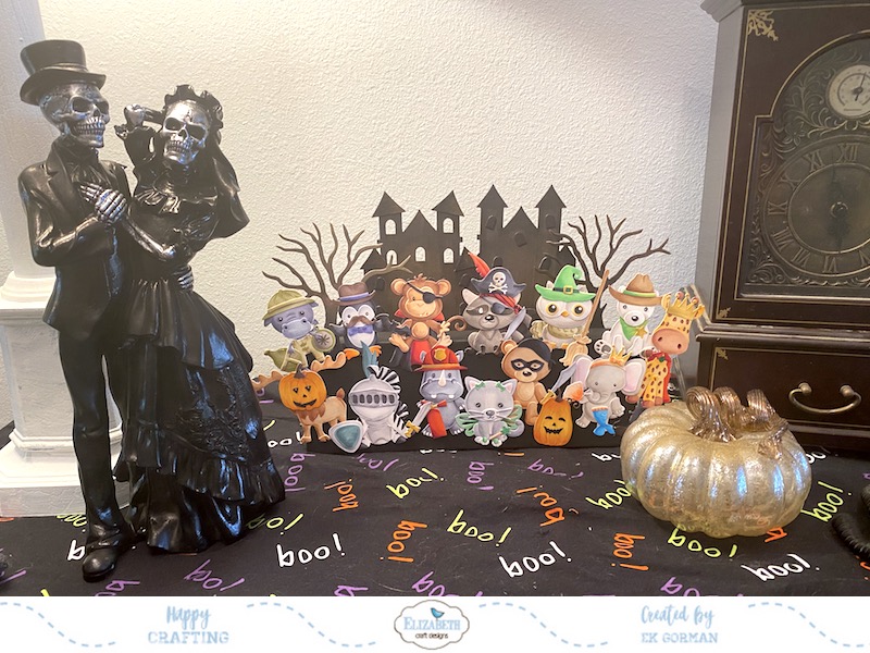 It is Halloween time (my favorite holiday of the year), and I am getting into the spirit by dressing up all (okay, not all), but many of the Elizabeth Craft Designs Critters! For full transparency, this project has taken a couple of months of work off and on, but it has so been worth it.
