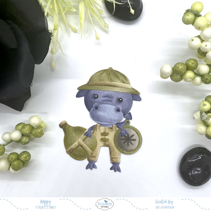 The Explore is created from the Dragon die set and the Safari Accessories die set. Fun fact, I couldn’t figure out why the coveralls wouldn’t fit any of the critters well until this minute when I realized it was suppose to be the binoculars. Oh well, he looks cute!
