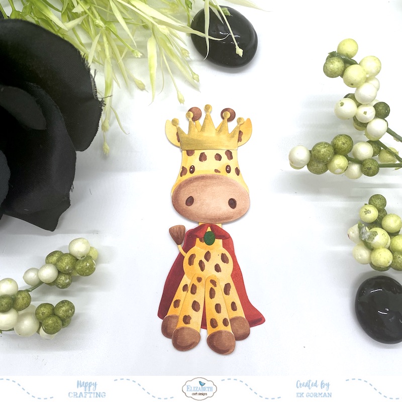 The Royal King was created using the Giraffe die set, the Prince die set, and Party Accessories die set.