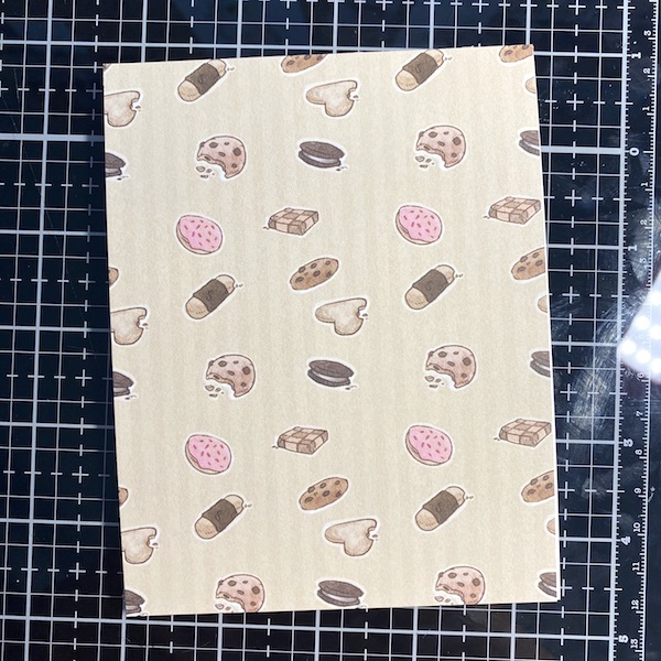 Step Two: I then trimmed the piece of printed paper to 4.25×5.5 inches and adhere it to an A2 cardframe.