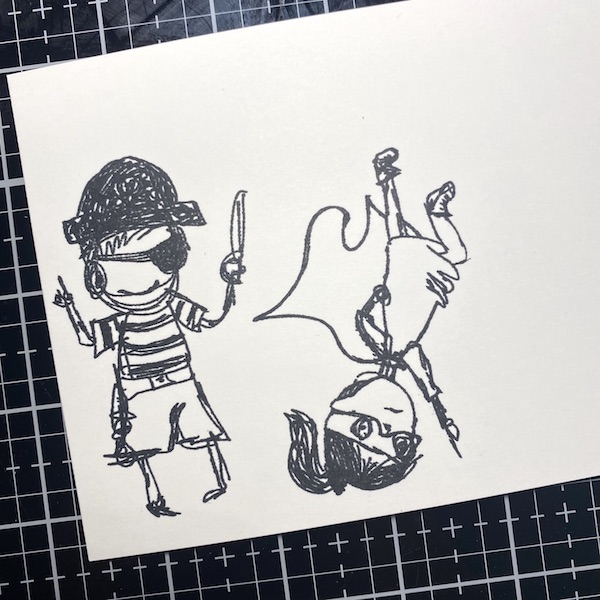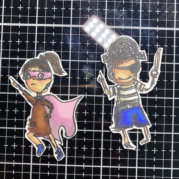 Step Five: I streamlined the second and third card by stamping the AALL & Create Pirate and Super Girl stamp sets onto some cardstock using alcohol maker friendly ink.