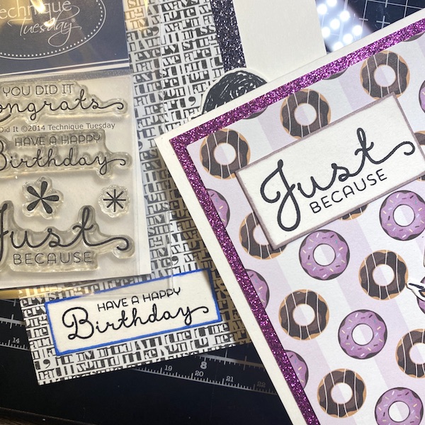 Step Eight: I added a sentiment to both cards from the Technique Tuesday You Did It stamp set. I stamped both sentiments onto some cardstock, trimmed them, and added a ring of color around the cardstock using a coordinating nuvo creative pen.