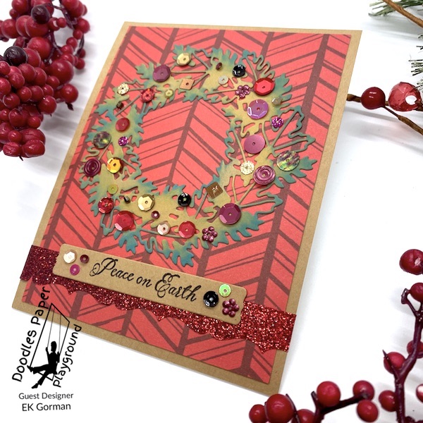 I started by die cutting some Kraft paper with a Christmas Wreath die.