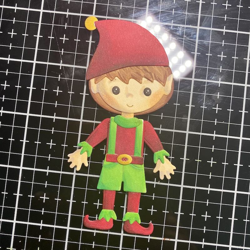 Step One: Using 90lb Soft Finish Cardstock, die cut the new Holiday Elf- His die set.