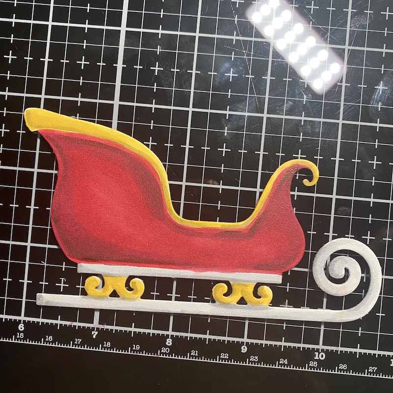 Step Eight: Repeat steps 1-3 using the Santa’s Sleigh die set (this is the other sleigh holiday die set from ECD).