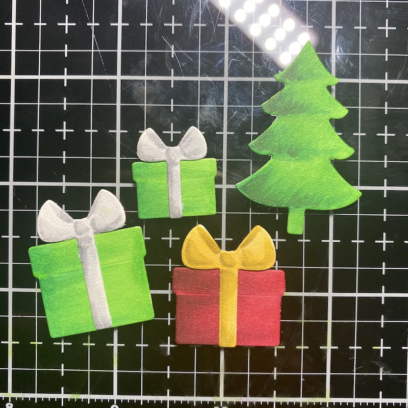 Step Nine: Repeat steps 1-3 using the presents and tree from Santa’s Sleigh die set.