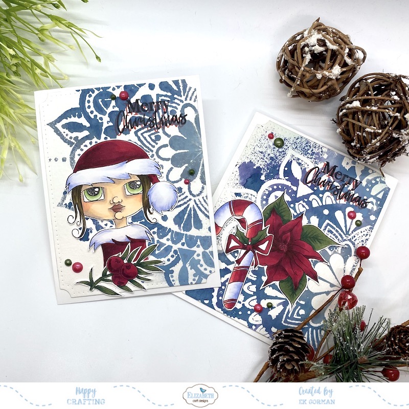 I am up on the Elizabeth Craft Designs Blog today sharing how I created these two cards using the Spring Flower Mandala Stencil and a couple of holiday stamps sets from Charlene and Isle.