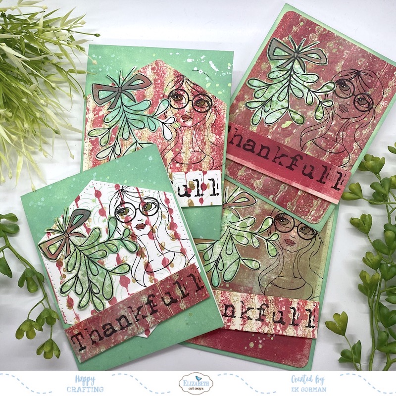I am up on the Elizabeth Craft Designs Blog today sharing how to create these mixed media holiday thank you cards featuring stamps and stencils from Ilse and Charlene.
