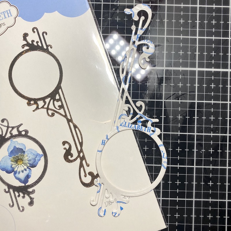 Step Seven: Die cut the Elegant Ornament die set from some Clear Double Sided Adhesive sheets.