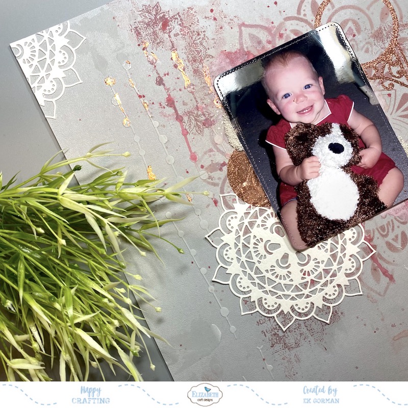 Did you hear? Today Elizabeth Craft Designs Design Team is dedicating this monthly group posts to Scrapbook layouts. Now, as you know, I am not a scrapbooker, and frankly have little knowledge on how to create such a layout, but I am alway eager to jump in and try something. I thought if I tried to create something along the lines of mixed media canvas with a picture, then I might be able to come up with an idea. What do you think? Was I close? Let me know in the comments below.