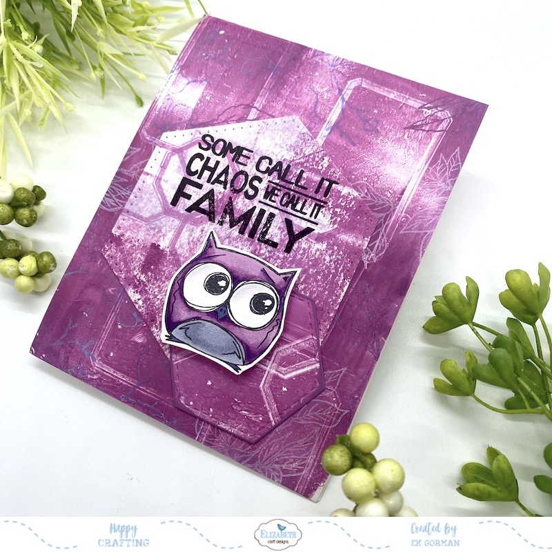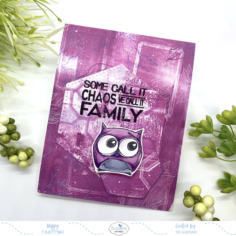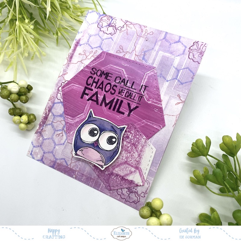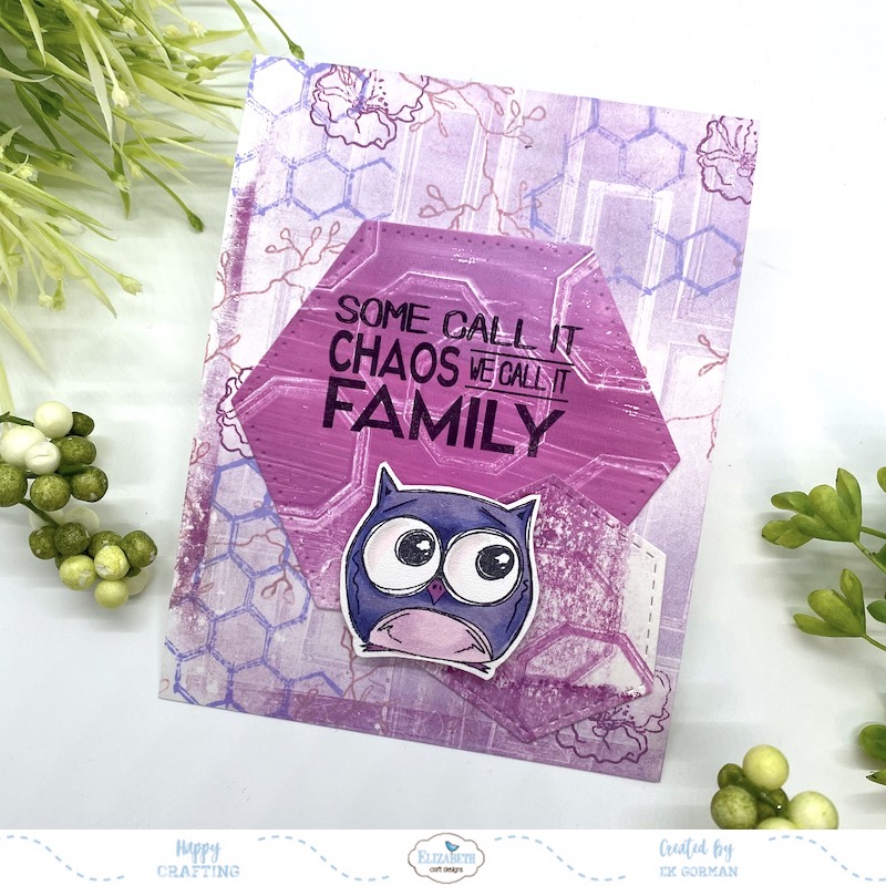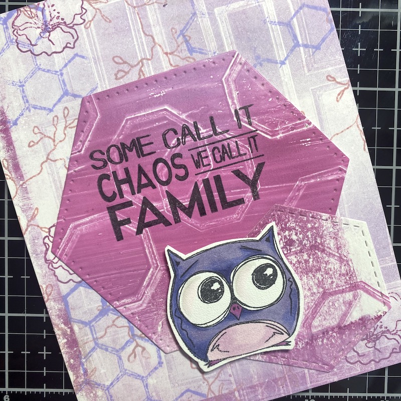 Here is the second card where the background stamps are more vivid. I like how the hexagons are on each layer on this card.