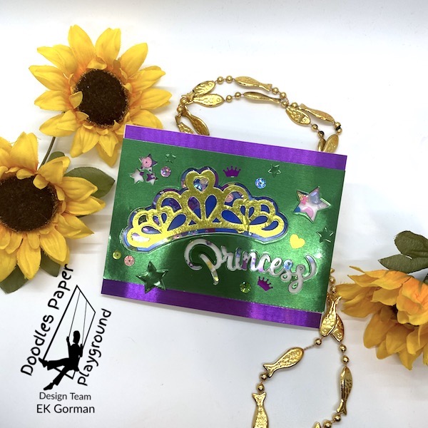 So I know Mardi Gras was Tuesday, making me two days late, but I don’t care, because any day is perfect for a boldly colored princess card. In all seriousness, the new sparkle blend Judy’s Royal Shine from Doodle’s Paper Playground was just meant to be blended with Mardi Gras colors.