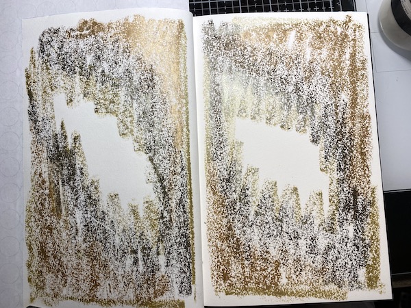 Step Two: To create the background of the journal pages, I scribbled gelatos over the pages in Iced Chai, Iced Coffee, Gold Champagne, and Chocolate.