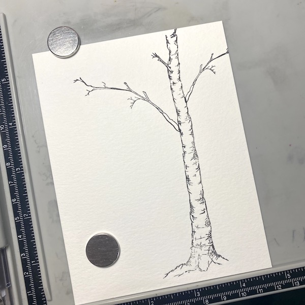 I started out by stamping the basically retired Altenew Birch Land stamp set onto some watercolor paper in Onxy Black Versafine ink.