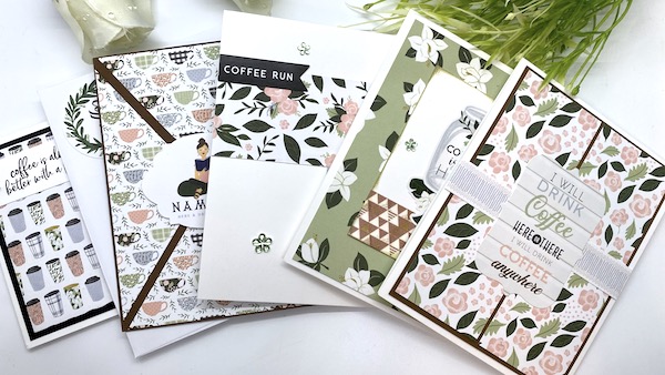 Hey Friends. I am back with the third and final part to my three part series creating Five Fast Cards with White Rose Crafts ‘Seriously Caffeinated’ Cardmaking and Craft Kit. If you love coffee and cardmaking made simple, you will absolutely fall in love with this beautifully coordinated kit.