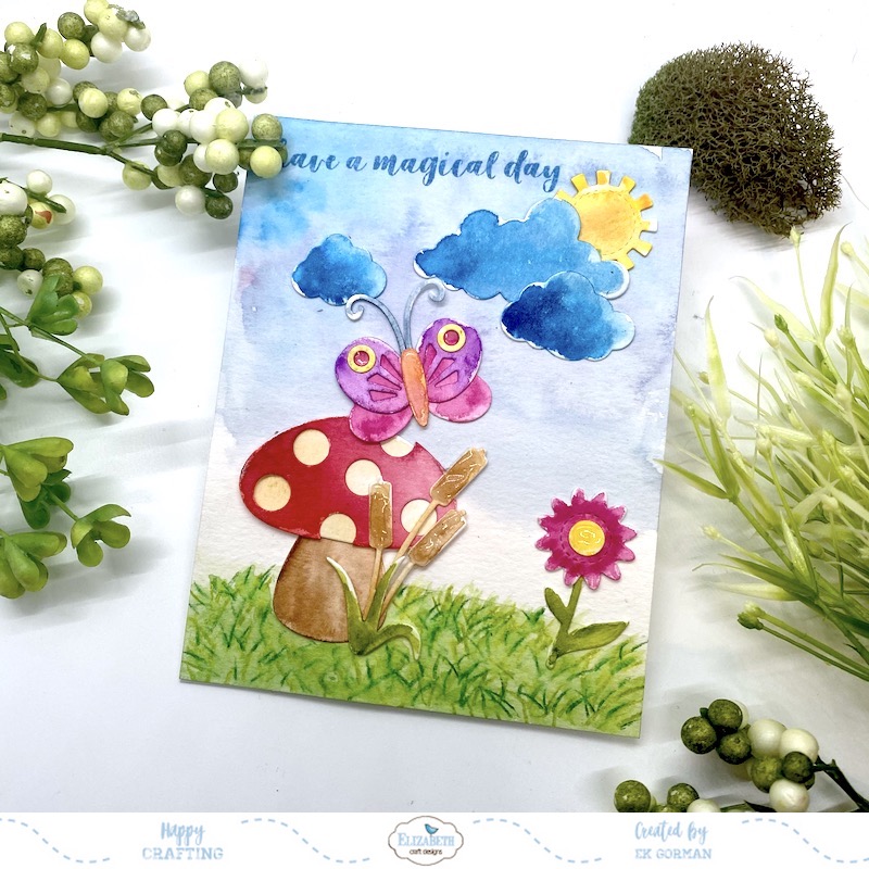 I am up on the Elizabeth Craft Designs Blog today showing off this experiment of Joset’s die cut buildable Once Upon A Time Accessories and watercolor.