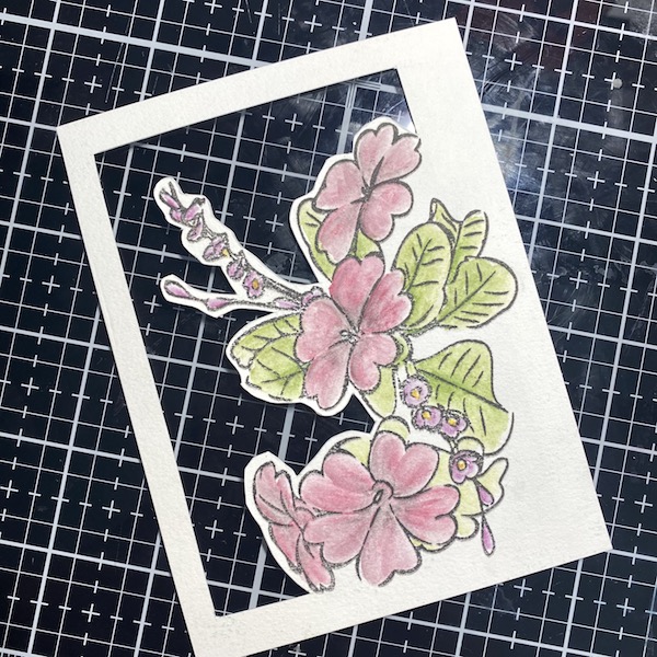 I started by stamping a Stamplorations floral image onto some watercolor paper with waterproof ink.