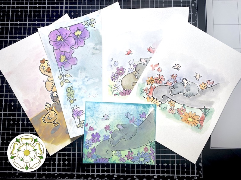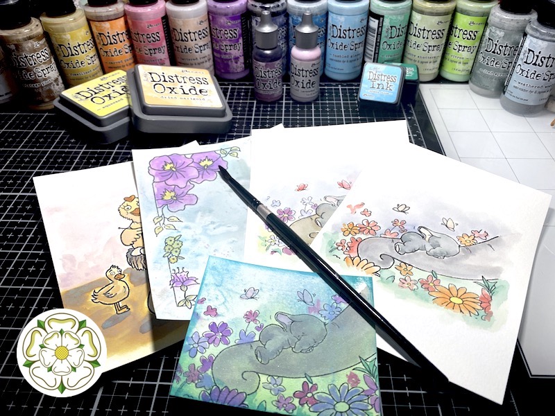 I’ve pulled a few White Rose Crafts stamps to play with tonight, and am showing different ways to watercolor with Inks, Oxides, Refillers, and even sprays!