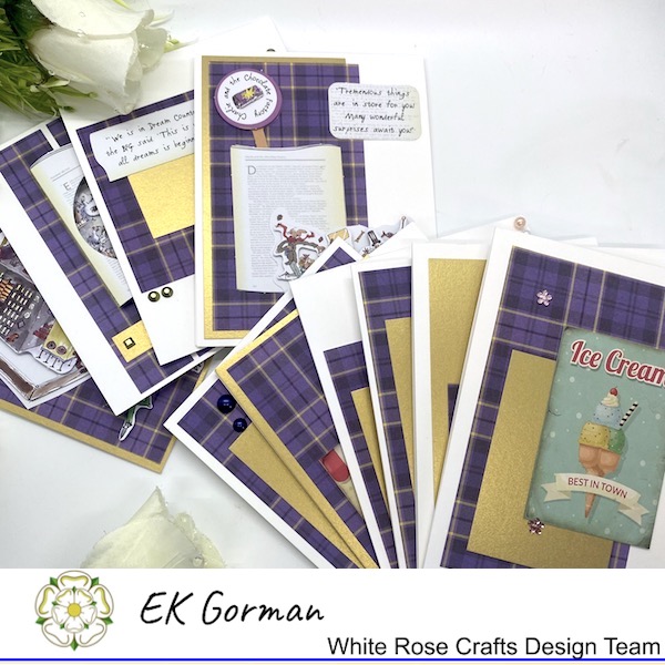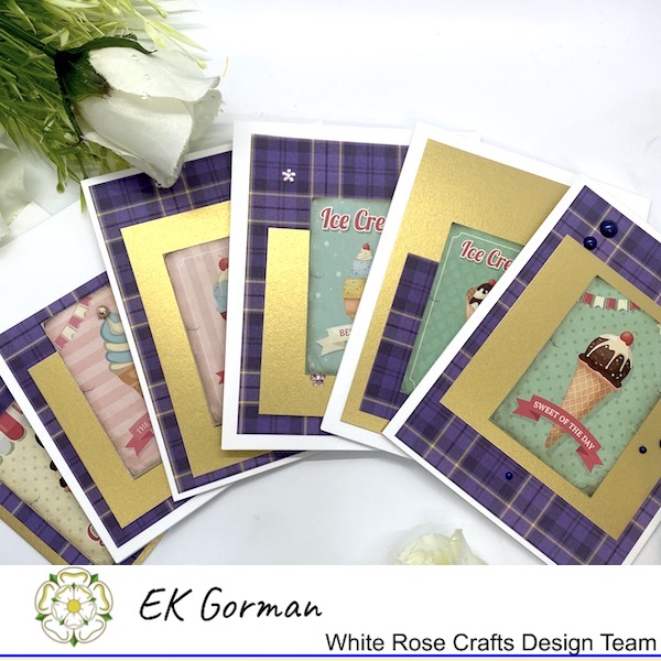 Hey friends! I have a new collection of cards created using just once piece of 12×12 sheet of printed paper from White Rose Crafts.