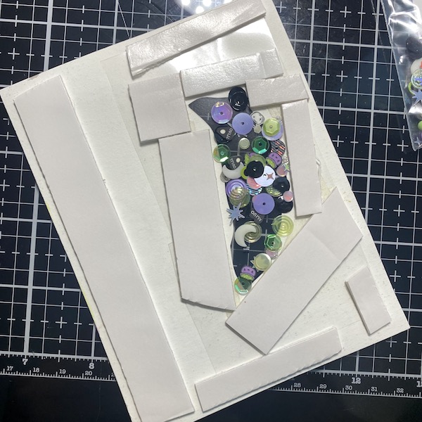 Step Four: Create the shaker element and fill the window with the Making Magic Sparkle Blend. Add shaker to an A2 card frame.