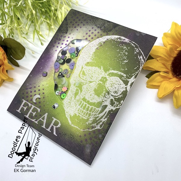 Did you see the Fall and Halloween themed release of Sparkle Blends from Doodle’s Paper Playground? If not, then you are really missing out on all the sequin fun! Today I am pulling out the new Making Magic Sparkle Blend and creating a bit of a spooky skull themed shaker card.