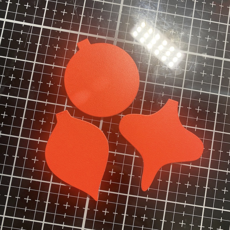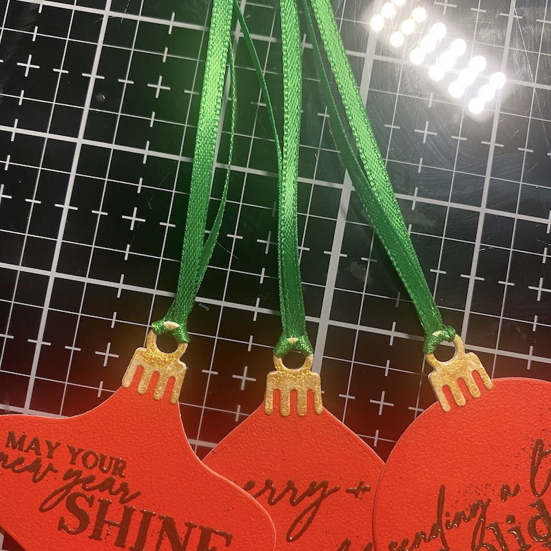 Step One: Die cut the Ornament Trio dies out of a sturdy cardstock. I used some old Red 90lb Soft Finish Cardstock.