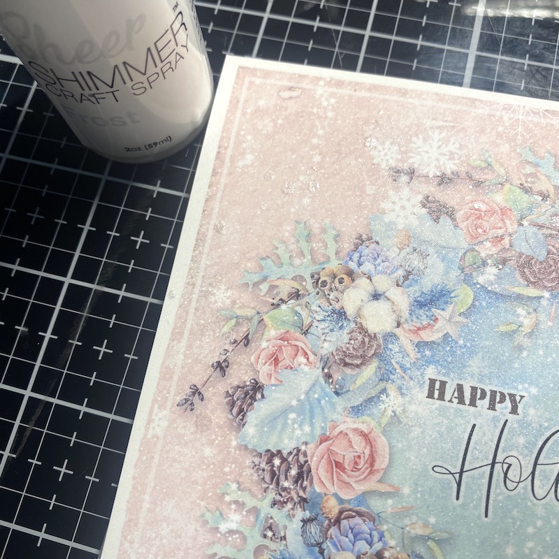 Step Ten: To add a little extra to the paper, spray it with Frost Shimmer Craft Spray.