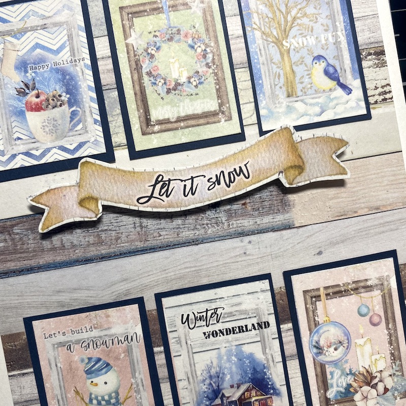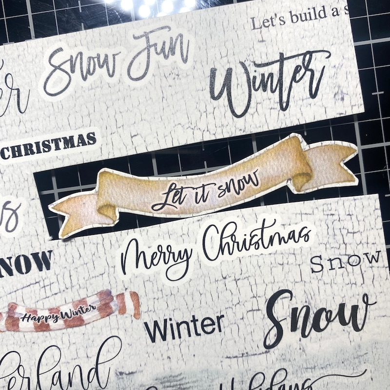 Step One: Trim up the page with the ephemera from the Winter Wonderland paper pack using a paper cutter to get clean lines.