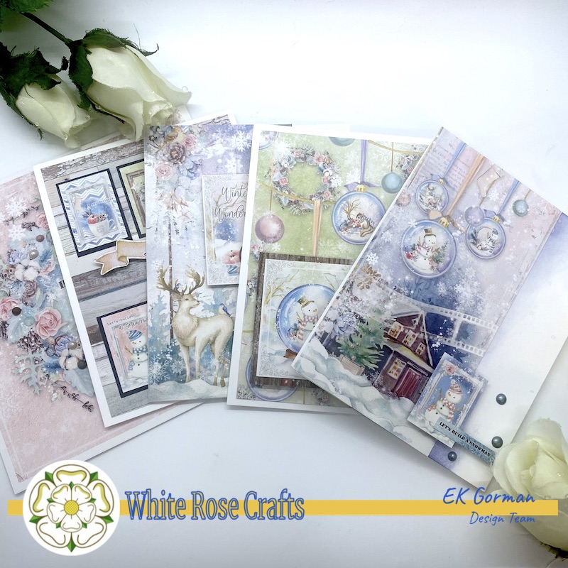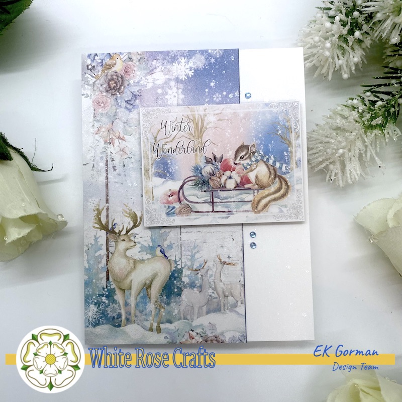Hello friends! I just love how I can pick up all kinds of international crafting supplies from White Rose Crafts. Today, I am creating a collection of cards crafted from the Winter Wonderland paper pack from the Japanese crafting company Asuka Studio. This is a fairly new line for WRC shelves, and I am falling absolutely in love with these unique papers. If you have not checked out this line of papers, you really most pop over and see what they have to offer.